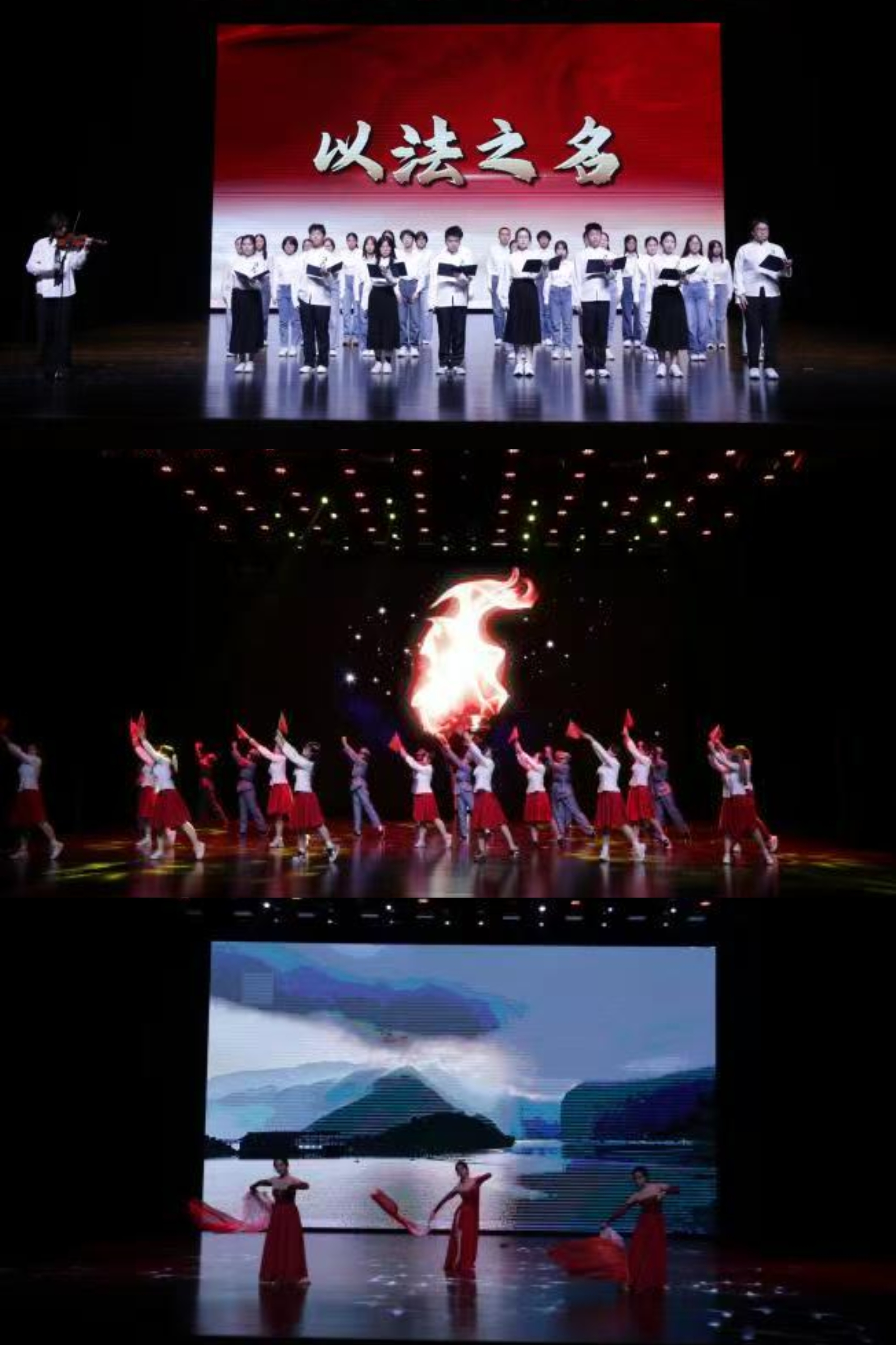 教师与学生同台献唱《我是一棵树》、《母亲的微笑》,用歌声传递师者深情,以旋律共筑法治理想,展现了和谐融洽、教学相长的学院文化,将现场气氛推向高潮。