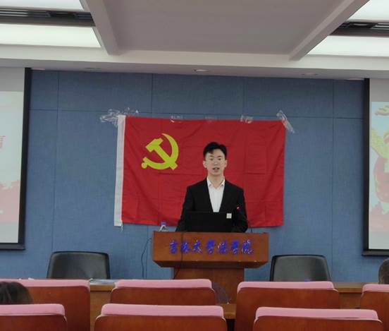 随后,2020级法学硕士梁键作为入党积极分子代表发言。他表示,参加这次仪式是鼓励更是鞭策,全体入党积极分子将按照《中国共产党章程》的要求,把党员所具备的条件与自身实际作比较,找出自己的差距,更加明确今后努力的方向。