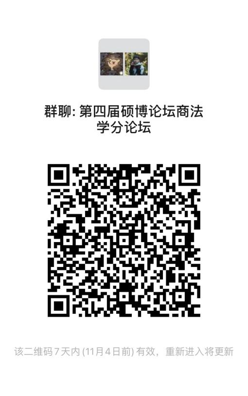 商法学方向法学硕士、博士研究生,以及由商法学方向导师指导的法律硕士。请各位同学及时扫码入群(入群后请在“我在本群的昵称”中写明“博士/学硕/法本法硕/非法本法硕+姓名”,如:博士张三)。