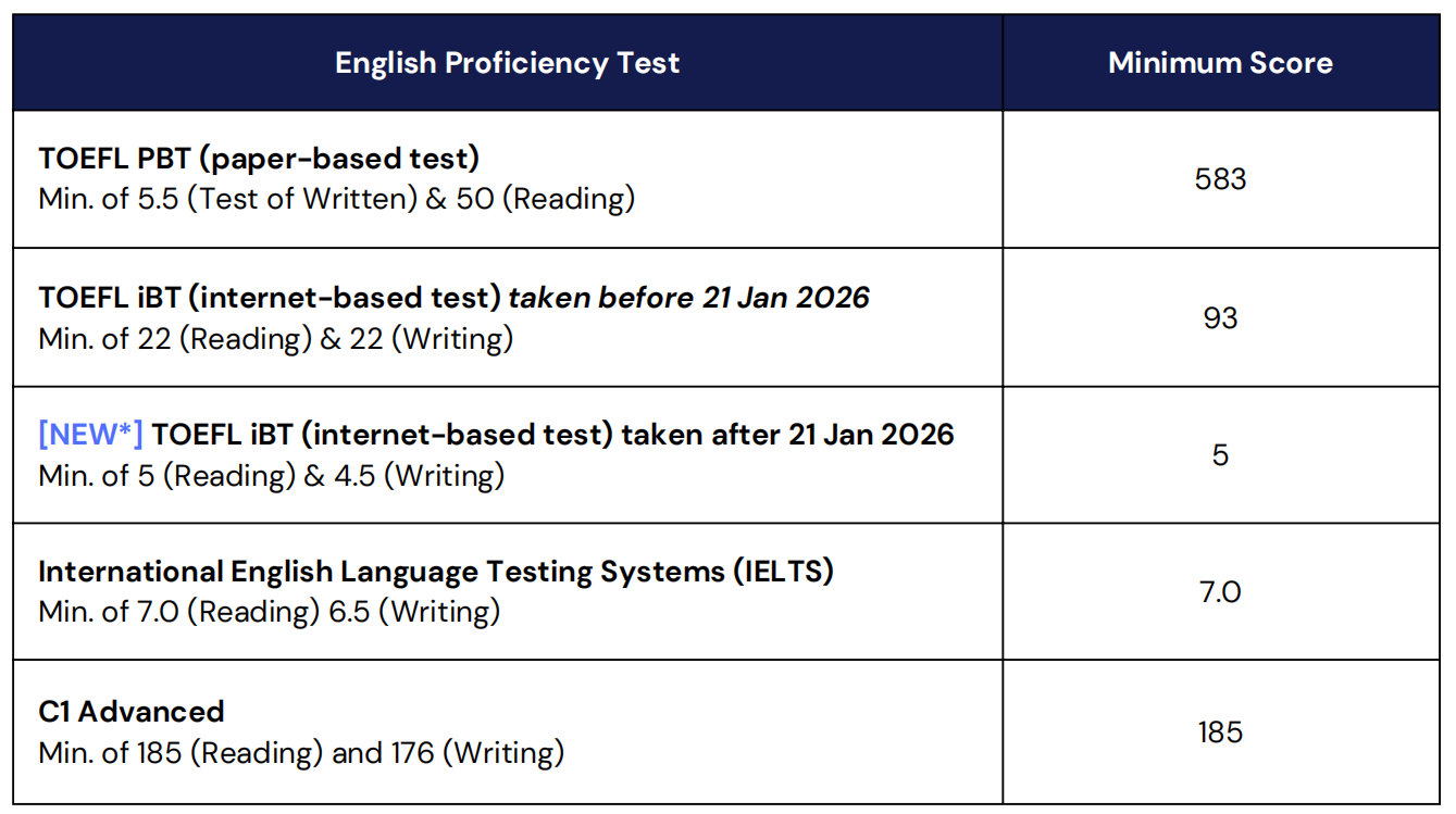 五、英语语言成绩要求: