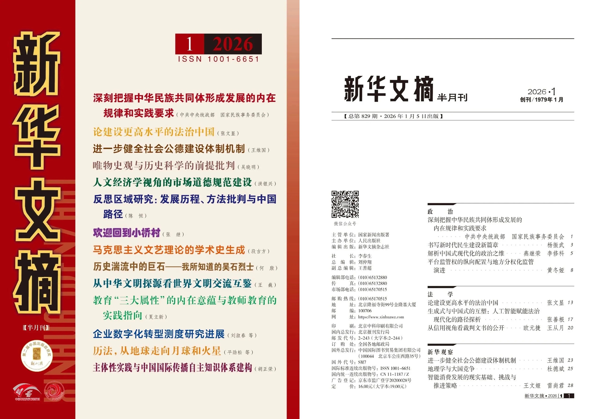 近日,《新华文摘》2026年第1期刊发了吉林大学张文显教授的学术论文《论建设更高水平的法治中国》。