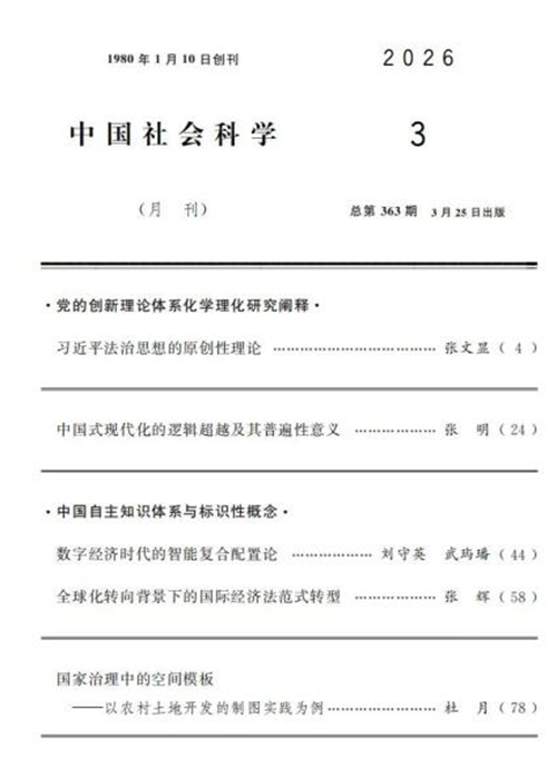 功勋教授、吉林大学哲学社会科学资深教授张文显在《中国社会科学》2026年第3期发表题为《习近平法治思想的原创性理论》的文章。