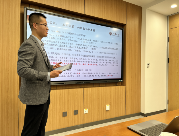 从理论到实践层面,孟孜谦博士生讲解了乾隆朝颁布的《律例馆校正洗冤录》,从此《洗冤录》有了官方认定的权威版本。这一版本中的很多方法事实上并不具有科学依据,然而部分官员盲目相信,不惜移花接木,以符合《洗冤录》的记载;另有部分官员为了求得案件真相,不得不回避对《洗冤录》的适用。由此孟孜谦博士生指出:我国古代的知识检验制度存在一定问题,后来者往往只是确证已知的内容,难以真正动摇或超越成说。