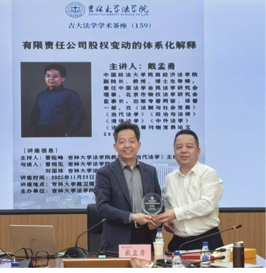 戴孟勇教授以“有限责任公司股权变动的体系化解释”为题,为师生带来一场精彩学术讲座。本次讲座由曹险峰教授主持,曹相见教授、刘国栋副教授参与与谈,鉴黄师